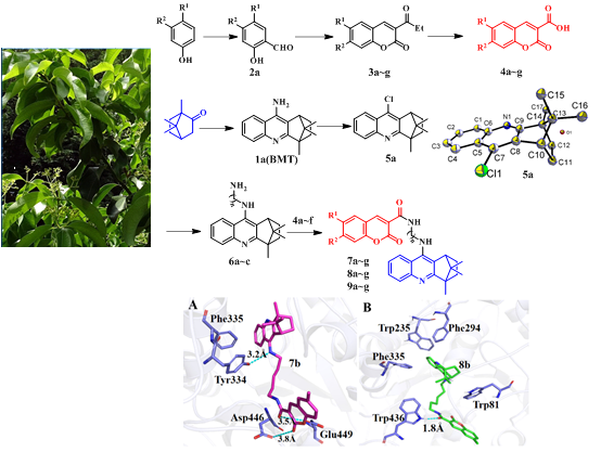 林学院博士研究生曾凡新在香豆素-BMT杂合体设计、合成及对抗乙酰胆碱酯酶生物活性测试等方面取得了重要进展,相关研究成果以“香豆素-BMT杂合体设计、合成和抗乙酰胆碱酯酶活性(Design, Synthesis and Bioactivity Evaluation of Coumarin–BMT Hybrids as New Acetylcholinesterase Inhibitors)”为题,于2022年3月在《Molecules》(IF=4.41)在线发表。江西农业大学为该论文第一署名单位,尹忠平教授、彭大勇副教授为共同通讯作者。