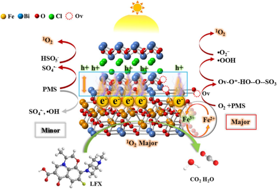 2025年6月3日,WilliamHill官网硕士研究生罗传发以第一作者在二区TOP《Separation and Purification Technology》(IF= 8.1)发表题为“Synergetic oxygen vacancy and homologous heterojunction into BiOCl/Bi2Fe4O9 for levofloxacin photodegradation: insight of Ov-O*-PMS intermediate toward efficient 1O2 generation”的论文,江西农业大学为第一署名单位。卢丽敏教授、黄喜根教授和谢琰玉博士为共同通讯作者,该研究工作得到了国家自然科学基金、江西省自然科学基金和福州大学能源与环境光催化国家重点实验室开放项目的支持。