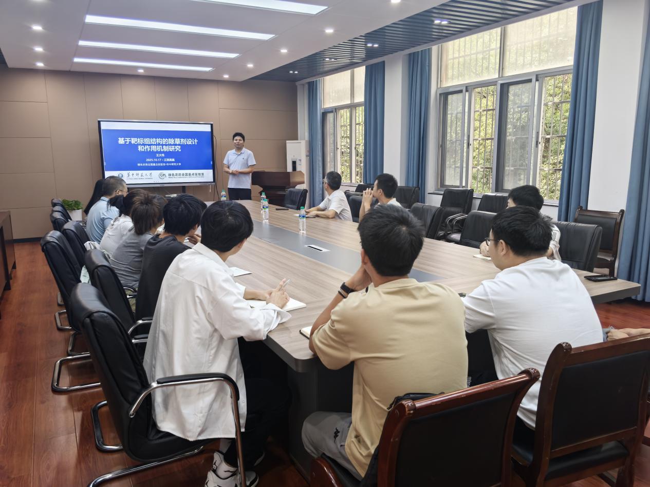 王大伟研究员分享了其在开展基于比较化学基因组学的除草剂研究中的成果与问题。详细介绍了除草剂喹草酮和候选除草剂苯酰诱酯等的发现过程、作用原理及实验效果,并对活性分子的靶标组结构与活性关系进行了深入讲解。报告结束后,王大伟研究员与化材师生和林学院师生进行了热烈讨论,并就相关学术问题进行了逐一解答。