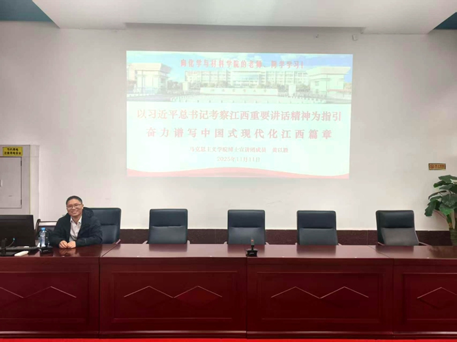 根据学院师生党员集中教育培训有关安排,2025年11月11日14:10,学院邀请马克思主义学院副院长、博士宣讲团成员黄以胜为WilliamHill官网全体师生党员作习近平总书记考察江西重要讲话精神专题辅导报告。学院全体师生党员现场聆听报告,报告会由学院党委书记刘庆言主持。